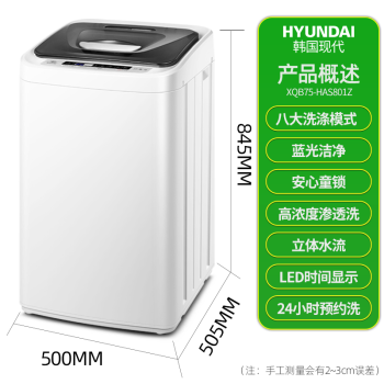 韓国現代(HYUNDAI)7.5キロの波輪全自動洗濯機家庭用小型ミニ洗濯機脱水脱水脱水機子供寮賃貸静音7.5キロ【ブルーレイアップグレードモデル】