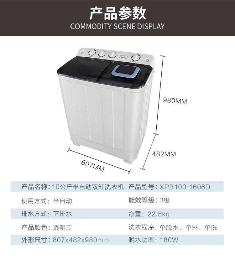 新飛Freestectic 10キロ半自動双シリダの洗濯機洗濯機サイクローンからの噴水洗浄浄水口(透明黒)X PB 100-160 D