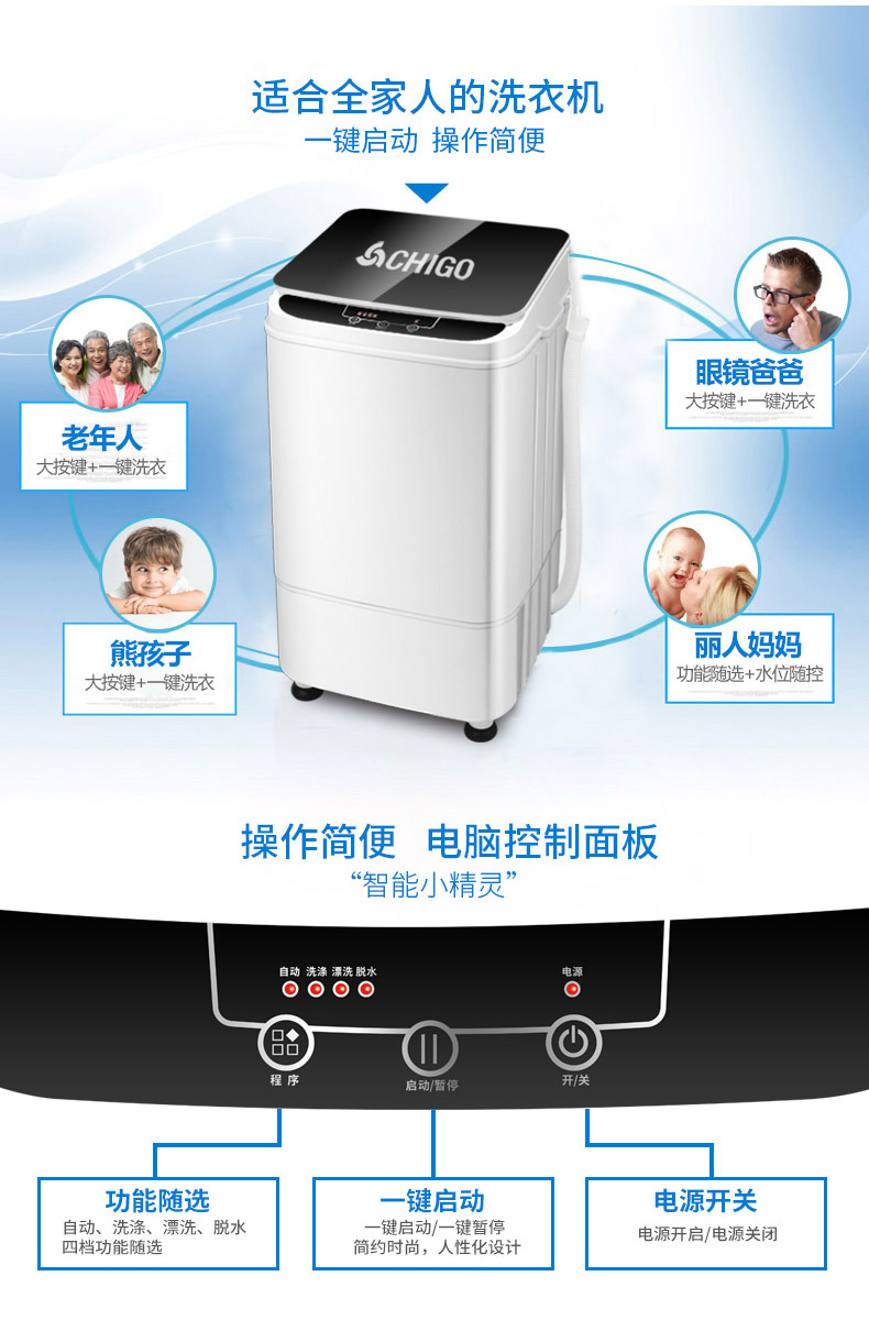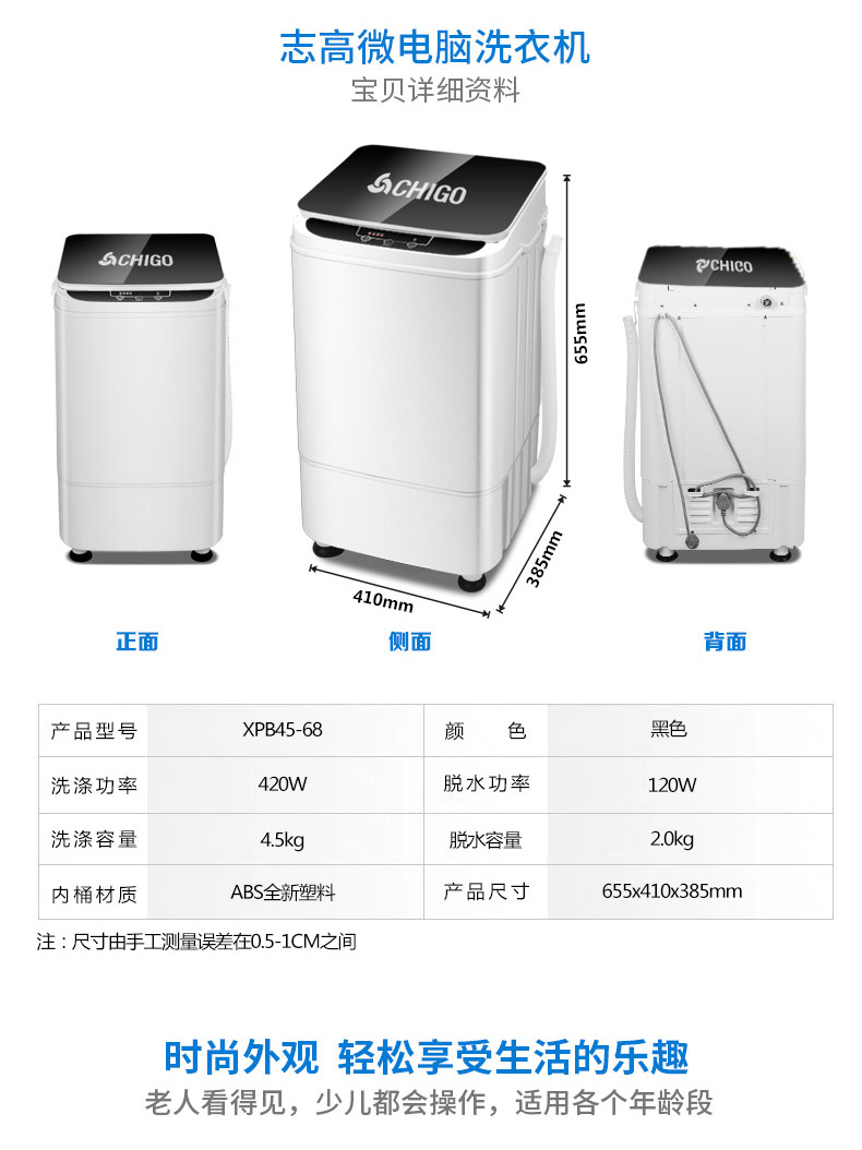 志高(CHゴゴ)4.5キロは1つのマイクリングの全自動洗濯機の家庭用波輪の小型のミニ寮のプロの特価は黒で乾燥します。