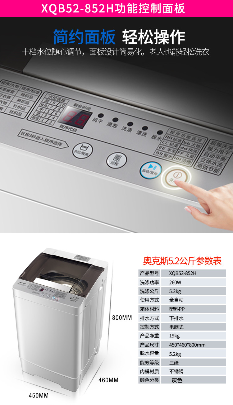 オーストリアクス洗濯機全自動波輪ミニ洗濯機小型家庭用寮赁贷子供用脱水5.2キロXB 52-939