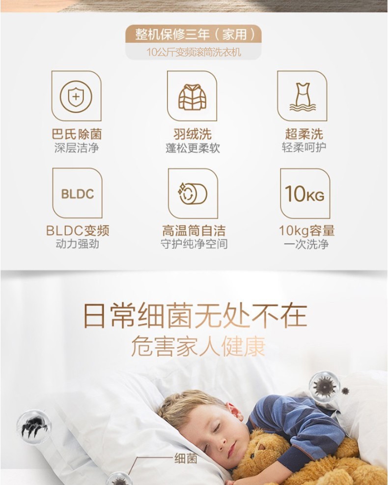 【超巨大恵送12重好礼】ハイアルロール洗濯機の全自動周波数が変化し、大容量洗濯機の穏やかな音を変えて消毒します。琥珀金高温除菌10キロの周波数が変化します。ドラム巴氏除菌します。