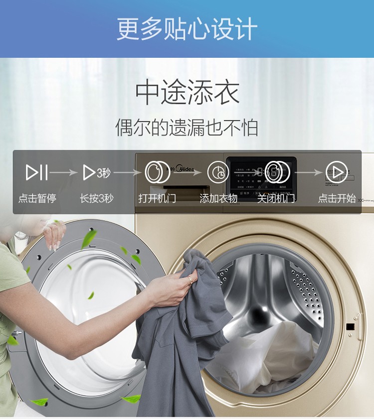 美的(Midea)10クローラ洗濯機10 KG全自動家庭用大容量BLDC周波数変化静音巴氏除菌洗浄一級機能ダウンチャーMG 1003131 DG 5(金)