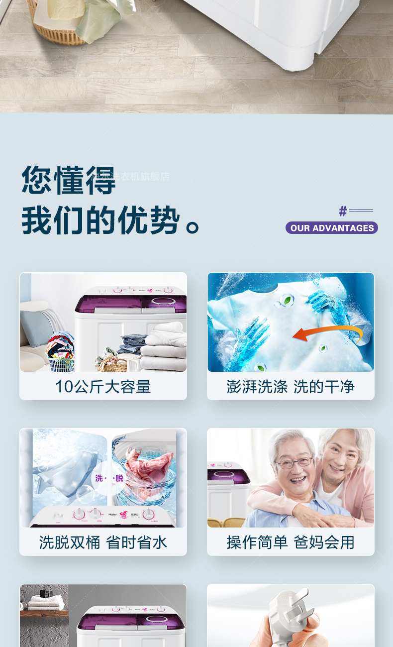 ハイアゼル10キロダブラケット洗濯機半自動大容量で、家庭用の簡単操作が省けます。水を節約して、夫で、長老に孝行します。