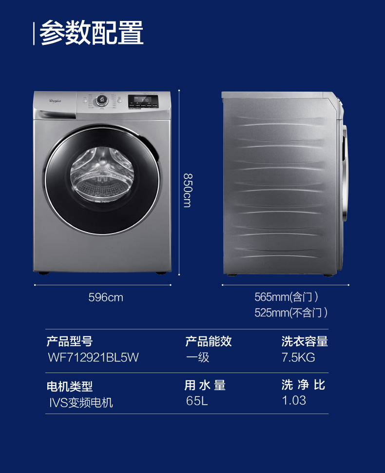 恵而浦(Whirlpool)7.5キロの周波数変化ドラム洗濯機シース・センスティ・レントリクリングネネネリング静粛極の灰WF 712921 BL 5 W