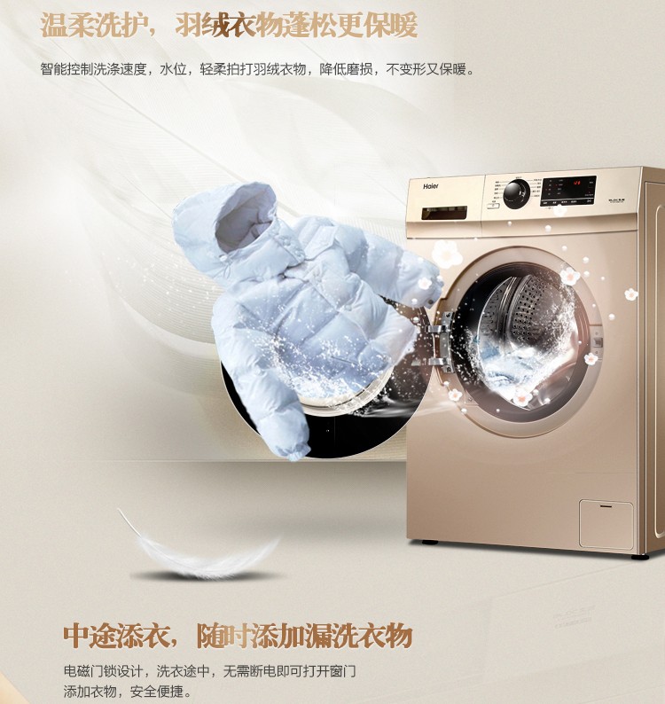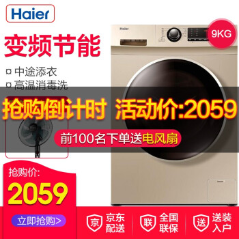 【送信扇】ハイアル洗濯機のドラム9キロの大容量周波数を変更し、省エネ全自動ドラム洗濯機の高温消毒洗濯中に服を追加しました。