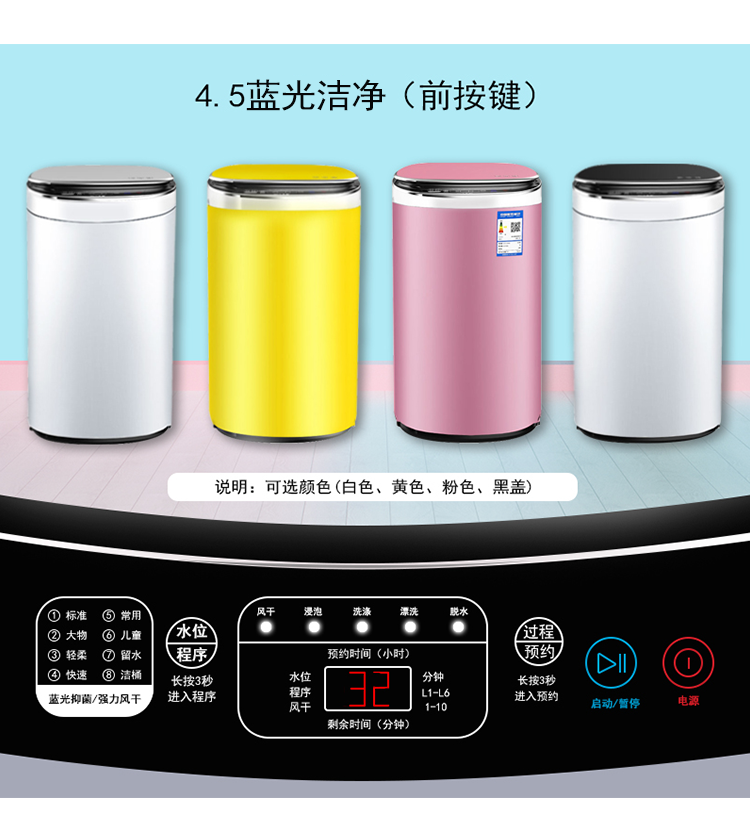 小黄鸭の高温煮洗濯机全自动子供ミニ洗濯机消毒洗濯小型家庭用知识乾燥4.5 kg全自动+高温煮洗い前に、パンを押してください。