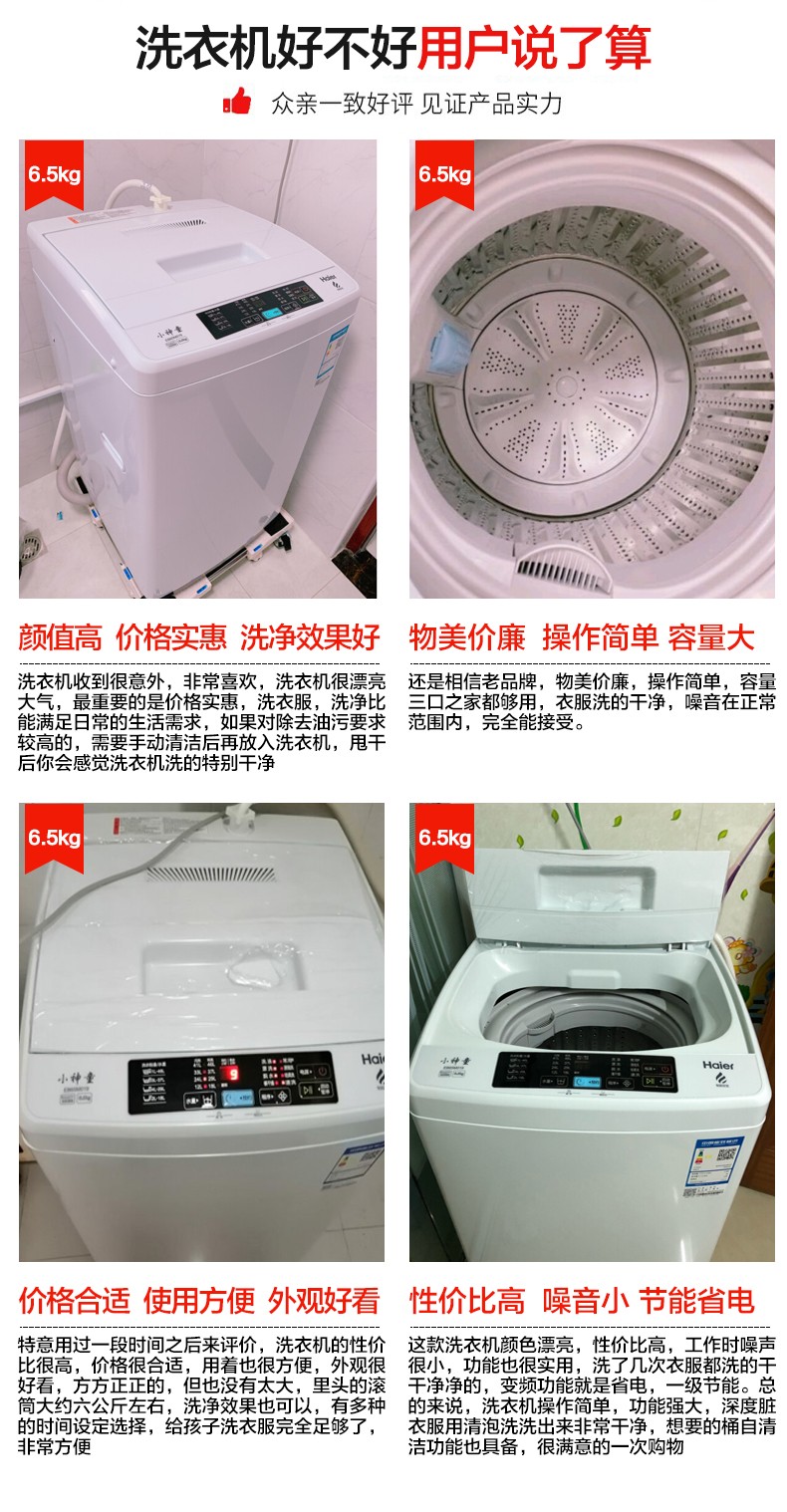 Haier/ハイアールボルボー洗濯機全自動小神童6.5キロ/8キロの大神童小型家庭用省エネ自清潔洗浄一体漂投二合一6.5キロハイアル小神童