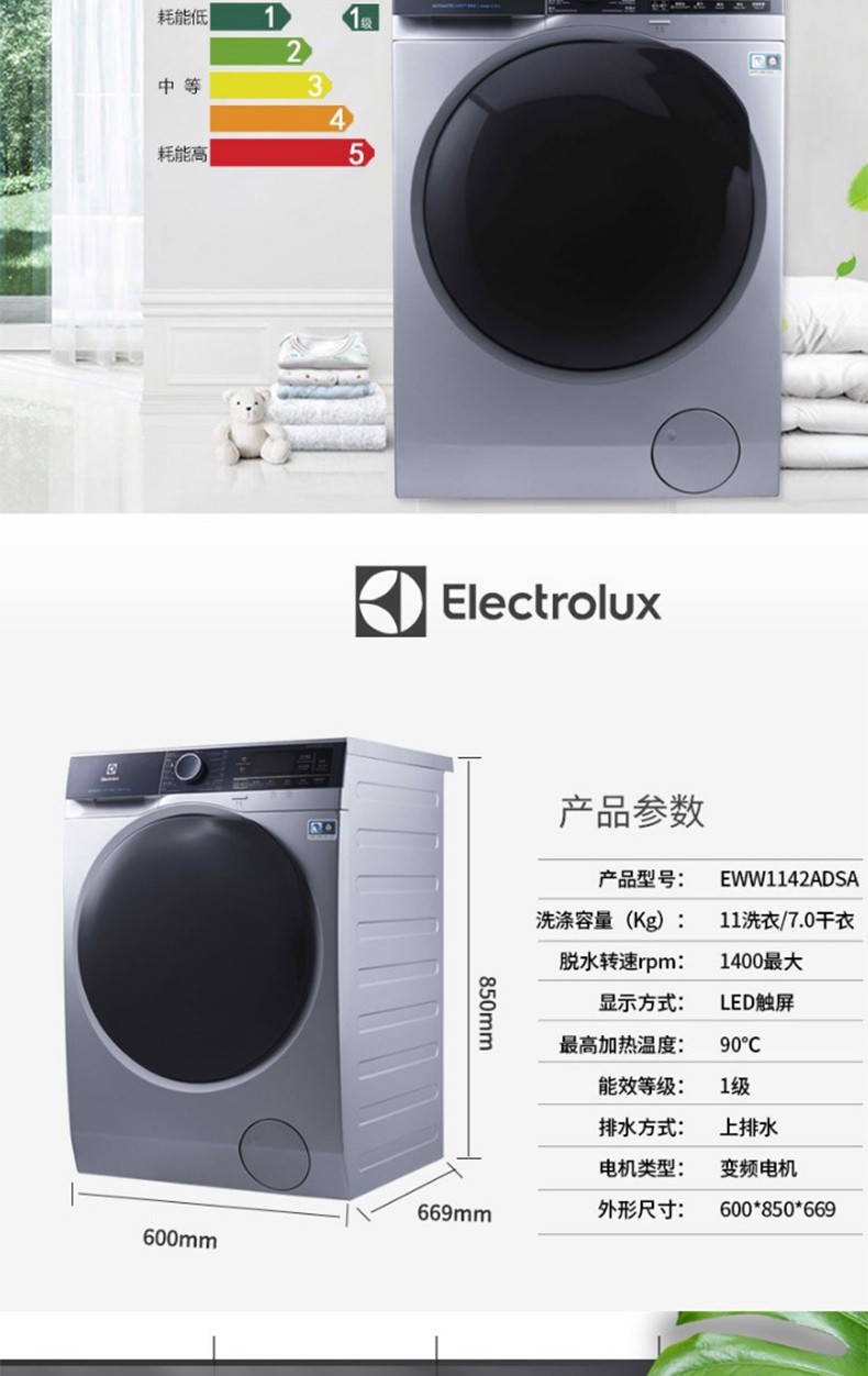 イリック(Electrolux)EW 1142 ADSA洗濯機の原装入力11キロの全自動ローラル洗濯機シルバー