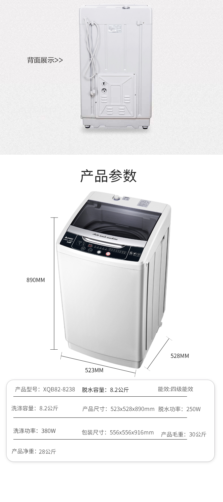 揚子集团の全自動洗濯機8.2キロの家庭用宿舎の洗濯は一体8.2キロのブレイモーデXQB 82-288です。